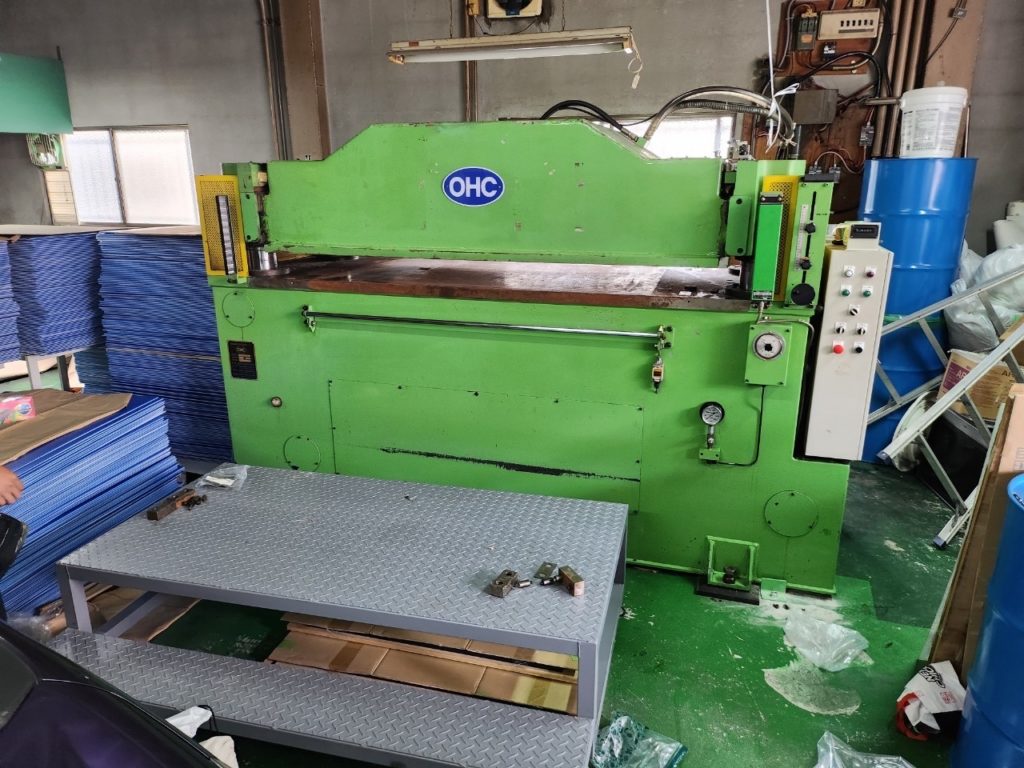 油圧プレス機 100tプレス機です。厚物などの抜き加工に適しています。 トムソン型を使用し自由な形に抜く事ができます。